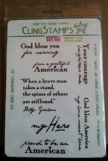 I am committed to sending a box of cards to Operation Write Home. In fact my box is full now and will be going out next weekend after my mom and sister add any extras they have. I wanted to send some Any Hero mail with my box though and this is where Stamper's Best comes in. Not only do they offer fabulous military themed stamp sets perfect for Any Hero mail they also donate $1 for each Operation Write Home set a customer buys. So I bought the My Hero Sentiments set and my order came with fab Operation Write Home stamp below (which you need for the back of the cards you send). I am so happy with the quality of this set and have used them on all my Any Hero cards.