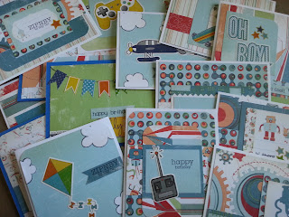 I've been focusing on using up stash and creating some cards for Operation Write Home. Here is a pile of masculine (for little boys) cards I made over my spring break. There's mostly Echo Park stickers and Cosmo Cricket paper and some Avocado Arts stamps. You can clearly see some birthday cards so I'm linking this up at the Simon Says Stamp challenge blog. Happy 4th birthday to the challenge site!