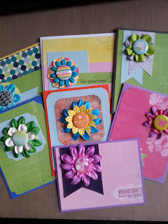 Here's some cards to use up the massive amounts of flowers and some of the flair I've collected over time.